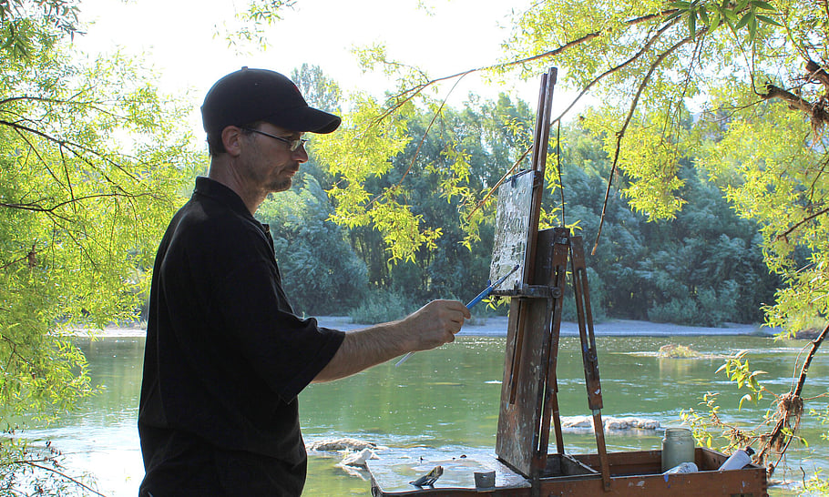 Growing up in a creative family where art was encouraged (apart from crayons on the walls, (...it wasn't me!) there was no shortage of inspiration. I decided to paint full time 14 years ago and now enjoy painting in a loose impressionist style, often painting en plein air (painting outdoors). This method informs my studio paintings, achieving a distinctive style and strong composition filled with natural light and emotion. It has its challenges, especially with the weather (my easel being blown over in the wind for example), but working this way creates a scense of depth and movement that is difficult to achieve in the studio alone.